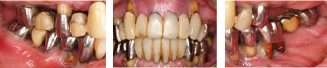インプラント治療例その2(重度歯周病患者様、上顎に6本下顎に4本インプラント埋入、60歳代女性)